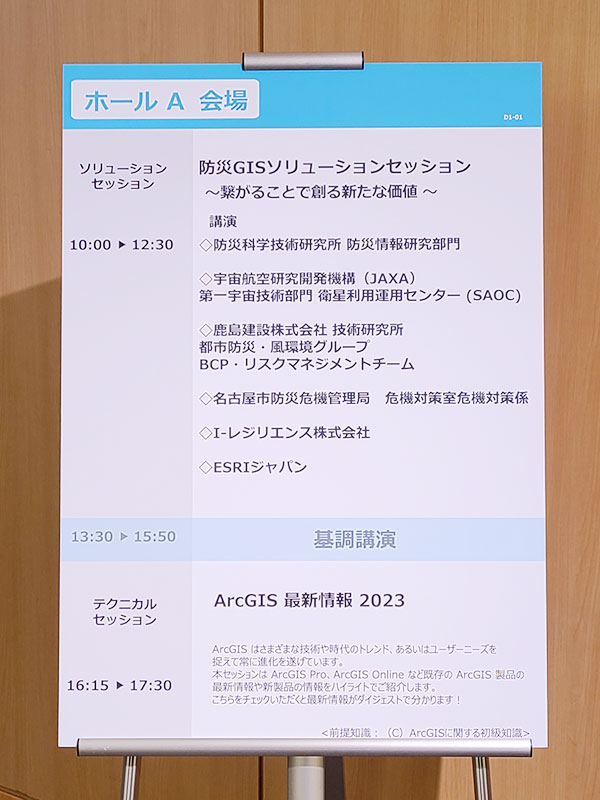 また、吉森研究員がセッション「防災GISソリューションセッション~繋がることで創る新たな価値~」にて、「災害対応組織の状況認識を統一」と題し事例紹介を行いました。