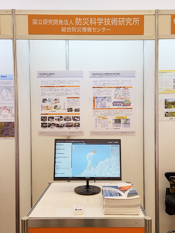 防災科研としては、災害時情報集約支援チーム「ISUT」や基盤的防災情報流通ネットワーク「SIP4D」、SIP4D等により共有された災害対応に必要な情報を集約し、統合的に発信する「bosaiXview」の展示・紹介を実施しました。