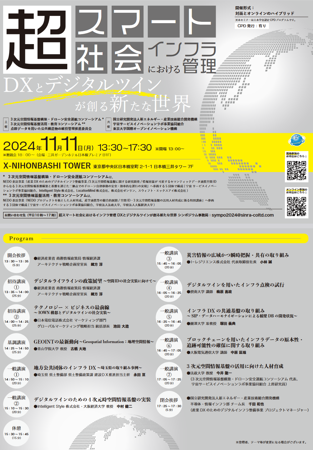 | 名称 | 「超スマート社会におけるインフラ管理 ~DXとデジタルツインが創る新たな世界~」 |