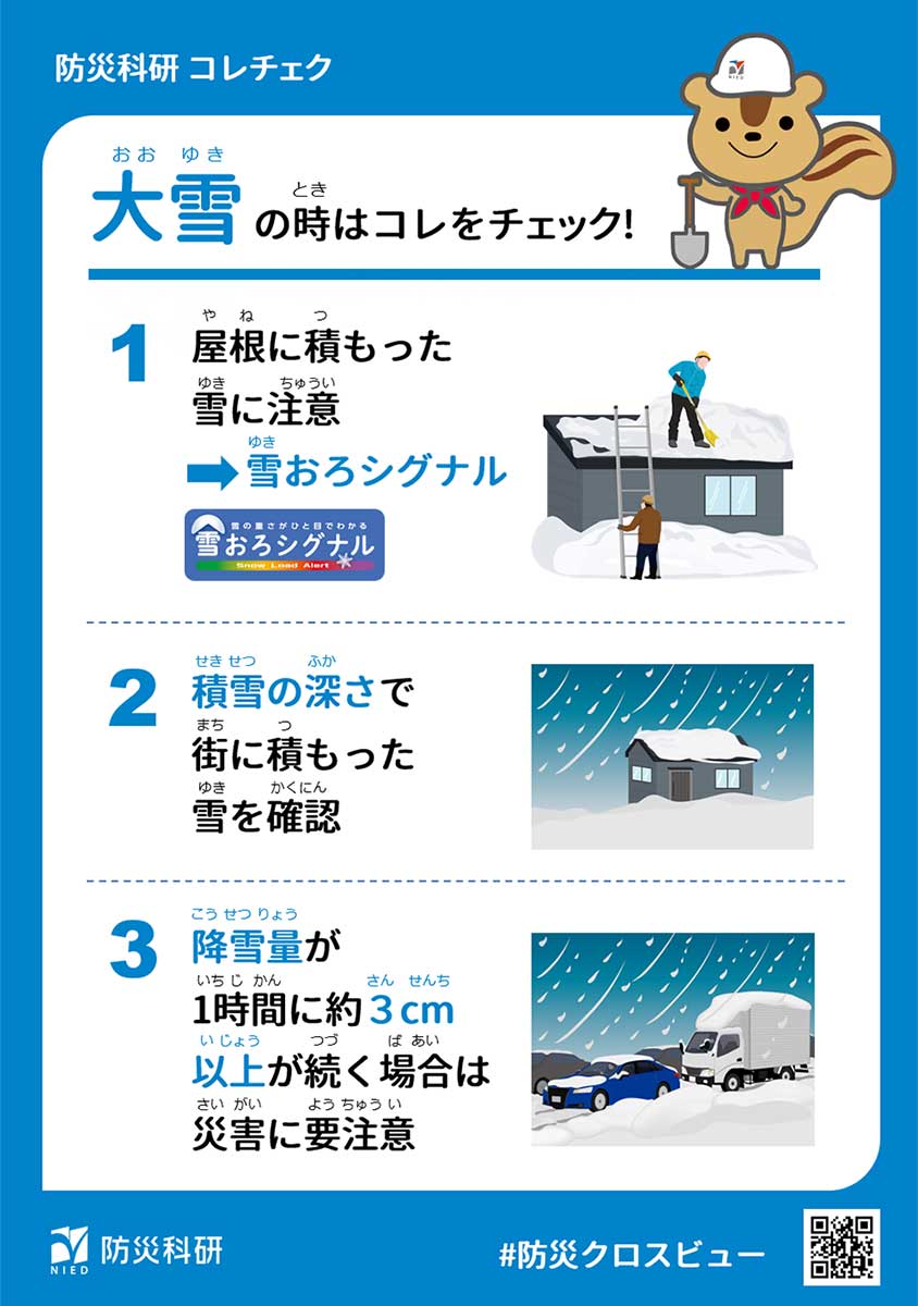 - 地震、噴火、大雨、大雪のときに確認すべき情報