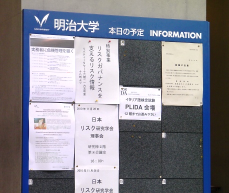 今回は防災と環境という2つの分野から、リスク情報のガバナンス的な展開に関して現状と課題が報告され、議論されます。須永君がんばれ!