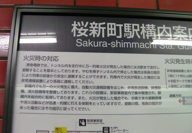 防災トマソン印刷2011/01/02 23:27 投稿者:坪川地下鉄駅構内の火災に関する情報板:桜新町駅東急電鉄ではトンネル火災発生時には次の駅まで走ると明記してある。こういう注意書きを我々は見逃しがちだ。Xにポスト シェアする コメント (0) コメントコメントする つぼつぼの部屋へ戻る