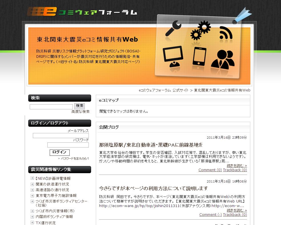 災害リスク情報プラットフォーム研究プロジェクトでは、この未曾有の震災に対する情報共有のため、臨時のeコミサイトを開設しました。