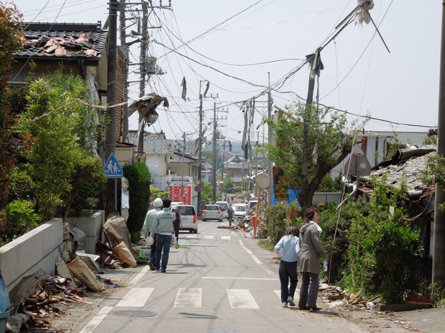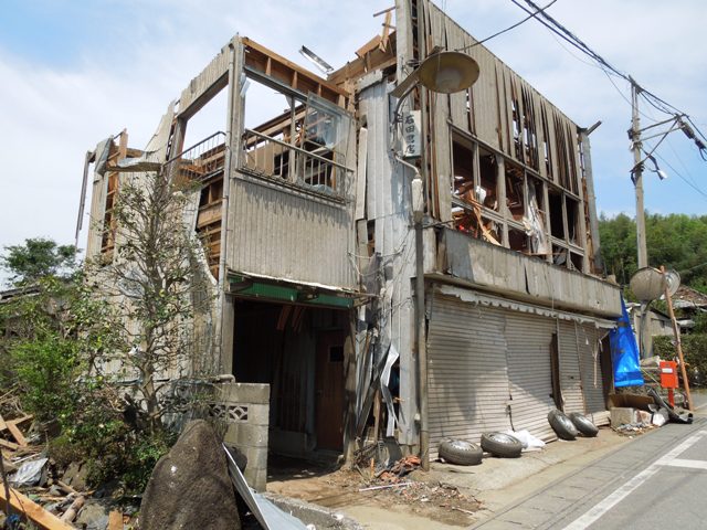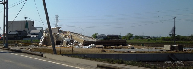 電柱もたくさん倒壊しています(上写真)。基礎から引きちぎられるように筋がむき出しになっています。停電が続いていますが、火災などの二次災害が頻発しなかったことは不幸中の幸いだったかもしれません。いずれにせよ、被災者の皆さんに心からお見舞い申し上げます。