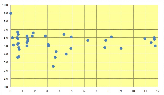 興味深いのは予測された震度と、実際の震度とがどの程度一致していたのかという点です。予測されたものの揺れが観測されなかったケースもあるので、これを除いた139の地震についてみると、予想震度よりも観測震度のほうが大きかったものが45地震(32.4%)、予想震度と観測震度が一致したものが31地震(22.3%)、予想震度が観測震度より大きかったものが63地震(45.3%)となっています。なかなか微妙なところですね。大きめに予想されたものと、一致したものとを「当たり」と判定すれば、当たりが約3分の2ということで、3分の1は予想以上の揺れになることもあるということを意味しています。予測精度を高めることはとても重要なことですが、いまの技術ではこの程度の精度でも上手に防災に生かすことを意識しないといけないということでしょうか。