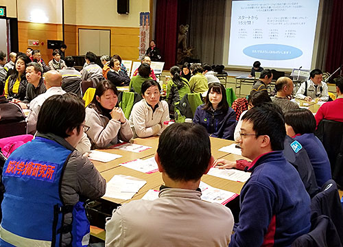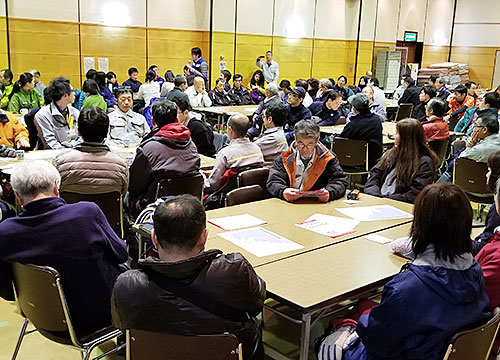 そこで、今回は、地域の方々が作ってきた地区防災計画の検証として、冬季の酷寒の中で道の駅の観光客を巻き込んだ津波避難訓練(雪かきの途中の津波発生)を行ったあと、漁村センターに避難した方々と避難時の課題等について話し合い(ワークショップ)ました。