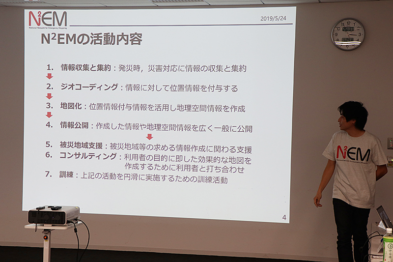 N²EMは災害発生時にオープンデータの収集・集約と、GISによる情報の地図化を行うことにより、被災地支援を行うことを目的として結成されたボランティアベースの組織です。