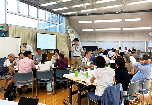 当研究プロジェクトでは、防災対策手法に関する研究開発の一環として、世田谷区と協力し、同区内の各まちづくりセンターが開催している「防災塾」にて、地域コミュニティ主体の地区防災計画の作成に取り組んでいます。