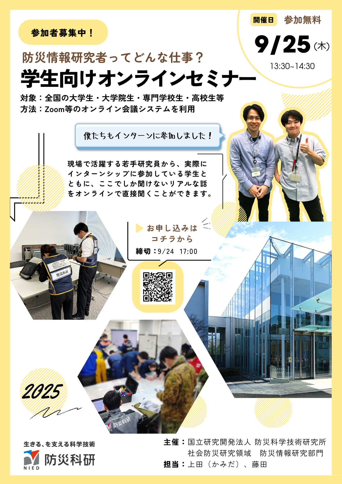 [2025/9/25] 「防災情報研究者ってどんな仕事?」学生向けオンラインセミナーを初開催しました(開催報告)